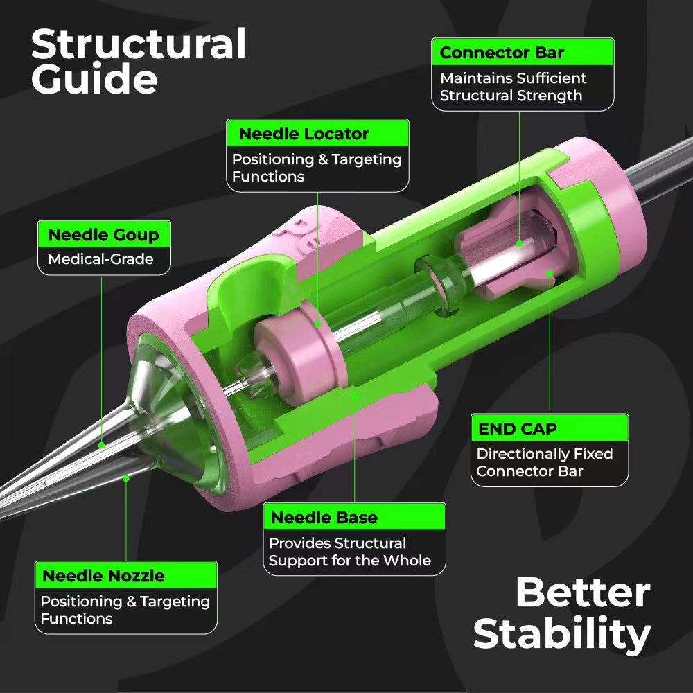 4. Needle nozzle lengthening transparent cartridge: so that the tattoo artist can have a more open field of vision, you can accurately observe the ink storage and the situation of the needle;